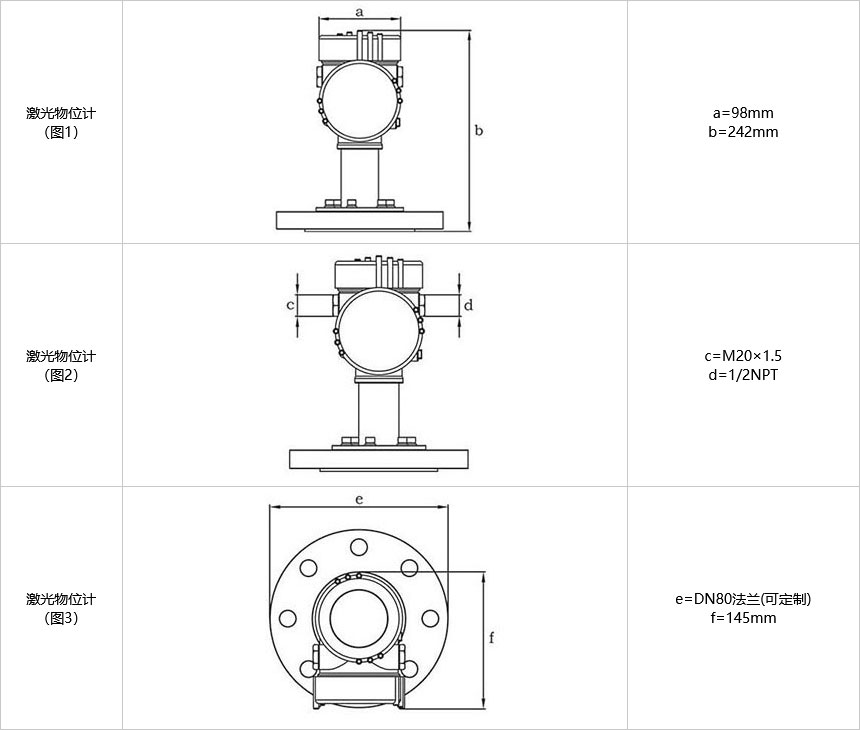 安裝要求:一般采用標(biāo)準(zhǔn)法蘭或螺紋安裝于罐頂,特殊工況選擇側(cè)側(cè)垂直安裝,為方便調(diào)試,儀表安裝建議在有平臺(tái)的地方。